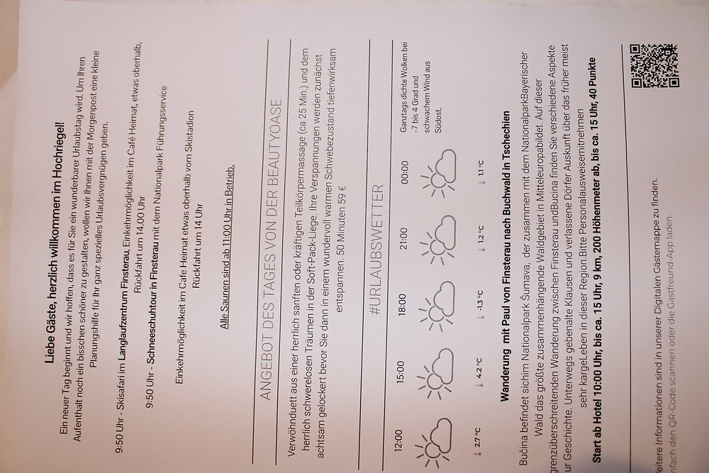 Genießen Sie echte Erholung mit unserer liebevollen 3/4-Verwöhnpension, täglich frisch und regional zubereitet. Entspannen Sie im großzügigen Wellnessbereich mit Panoramasaunen, Dampfbädern, Ruheräumen und dem einladenden Relaxgarten - ein Ort zum Kraft tanken. Erkunden Sie die unberührte Natur bei kostenlosen geführten Wanderungen (fast ganzjährig). Im Sommer laden wir Sie ein, Boule und Tennis zu spielen, im Winter erwarten Sie Schneeschuh-Touren, Langlaufloipen wenige Gehminuten entfernt und viele weitere Aktivitäten. Alle Sport- und Freizeitangebote sind inklusive. Für kleine Gäste gibt es einen Spielplatz und eine gemütliche Spielecke. Abends sorgen Bingo (dienstags) und Tanz mit Livemusik (unregelmäßig) für gesellige Stunden. Ehrliche Gastfreundschaft und faire Preise stehen bei uns im Mittelpunkt - damit Sie sorgenfrei genießen können. Unser Ziel ist es, Ihnen mit Herzlichkeit einen Ort zu schaffen, an dem Sie zur Ruhe kommen und besondere Momente erleben.